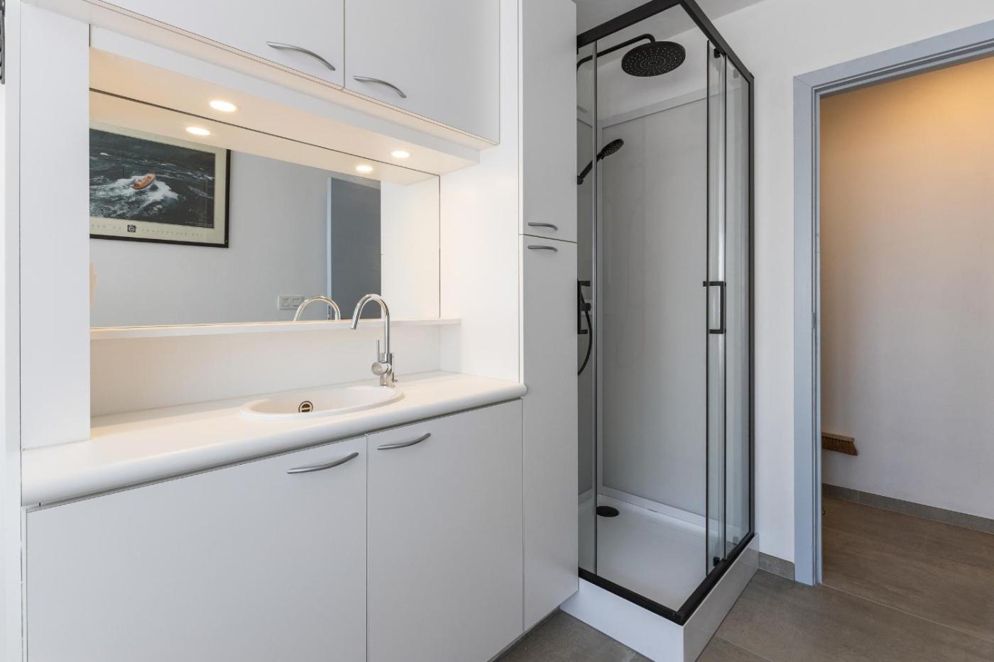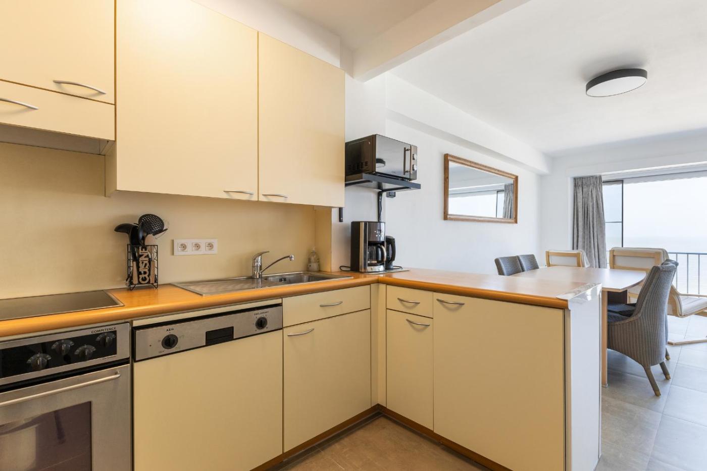 Two-Bedroom Apartment. This spacious apartment includes 2 bedrooms, a kitchen and 1 bathroom with a bath and a shower. In the kitchen, guests will find a refrigerator, an oven and a microwave. The apartment offers a TV, a washing machine, a tea and coffee maker, heating as well as sea views. The unit has 2 beds.