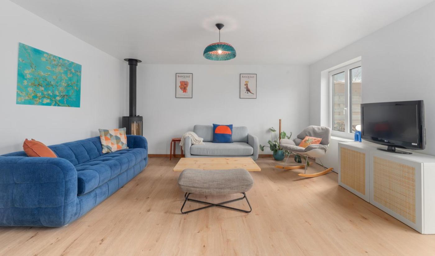 Three-Bedroom Holiday Home. Featuring 3 bedrooms and 1 bathroom with a bath, this holiday home offers a well-fitted kitchen and a terrace. In the well-equipped kitchen, guests will find a stovetop, a dishwasher, kitchenware and an oven. The holiday home provides a washing machine, a tea and coffee maker, a sofa, a TV, as well as garden views.