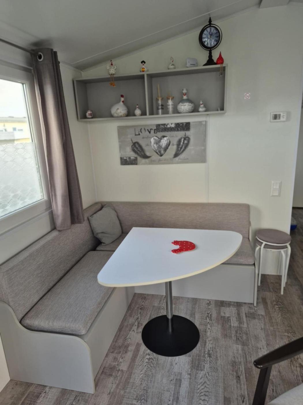 Mobile Home. This mobile home features 1 living room, 2 separate bedrooms and 1 bathroom with a shower and a hairdryer. Guests will find a stovetop, a refrigerator and kitchenware in the kitchenette. The mobile home also comes with a barbecue. Boasting a terrace with garden views, this mobile home also features a tea and coffee maker and a flat-screen TV. The unit has 4 beds.