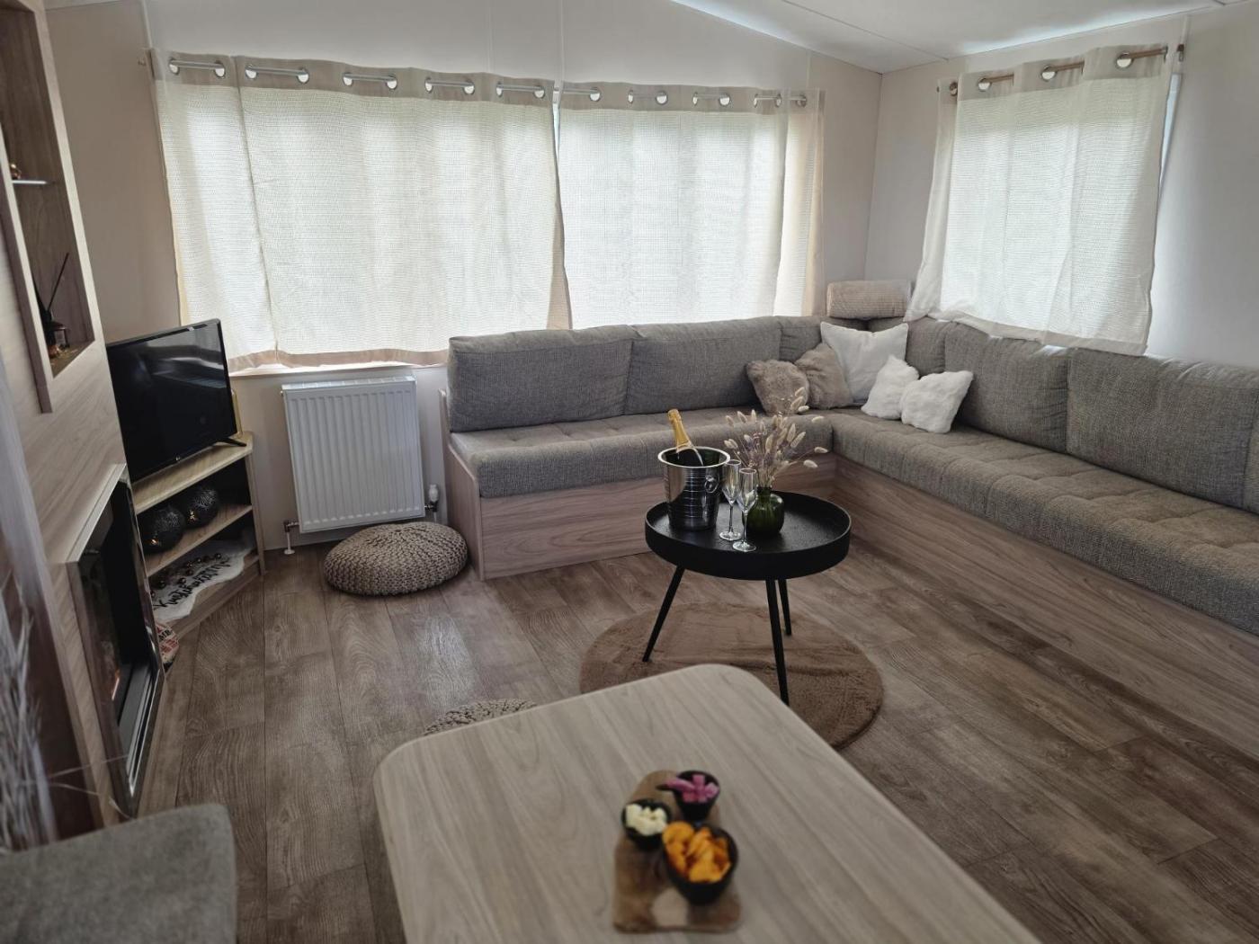 Mobile Home. Featuring 1 bedroom, this mobile home offers 1 bathroom with a shower, a seating area and terraceyou can relax. The fully equipped kitchen features a stovetop, a refrigerator, kitchenware and an oven. This mobile home has a tea and coffee maker, a dining area, a flat-screen TV and an outdoor dining area. The unit has 3 beds.
